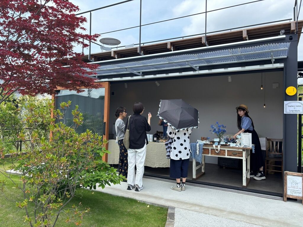 太陽の日を浴びながら、お庭でマルシェを楽しむ